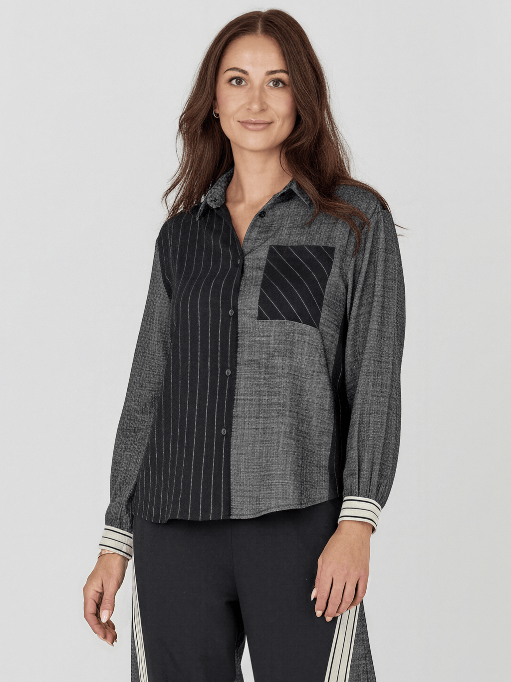 This long-sleeved shirt has a modern expression with fine, varied stripes that give a unique and cool look. The shirt has a classic button closure and a simple chest pocket, while the striped cuffs add a discreet detail. It can easily be styled with the matching trousers for a cohesive set, or paired with your own favorites.