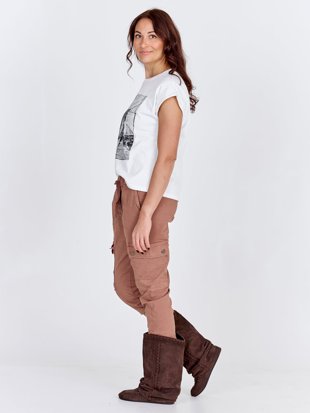 Our popular Carmen fit is known for its cargo design and comfortable comfort. The trousers in the Carmen fit are in an extremely stretchy material, fitting nicely in the legs, with a regular, elastic waist with a tie belt. Choose your usual size. If you want a more fitted fit, you can go down a size, or up a size for a more baggy fit.