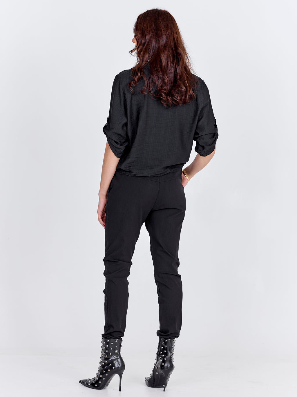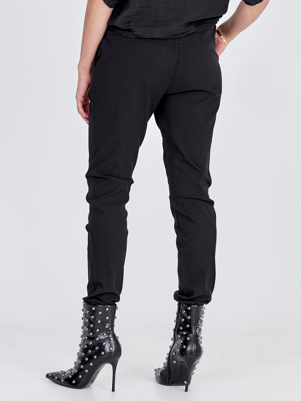 These trousers are made of a soft viscose stretch material that provides both freedom of movement and comfort throughout the day. The waist features elastic and an adjustable drawstring, ensuring a flexible fit, while the straight leg and relaxed fit create a modern and versatile look. A pair of trousers that can easily be styled for both everyday wear and smarter occasions - depending on how you combine them.