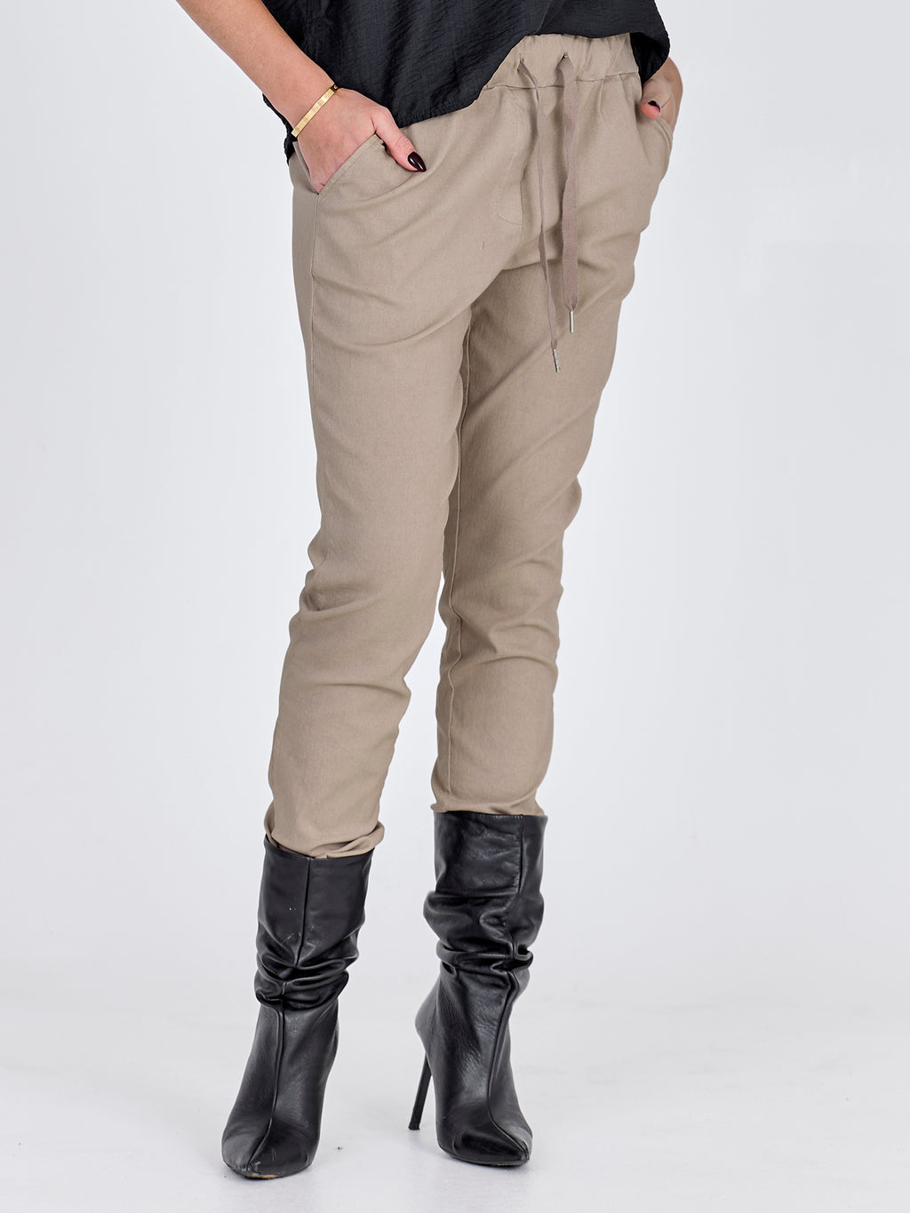 These trousers are made of a soft viscose stretch material that provides both freedom of movement and comfort throughout the day. The waist features elastic and an adjustable drawstring, ensuring a flexible fit, while the straight leg and relaxed fit create a modern and versatile look. A pair of trousers that can easily be styled for both everyday wear and smarter occasions - depending on how you combine them.