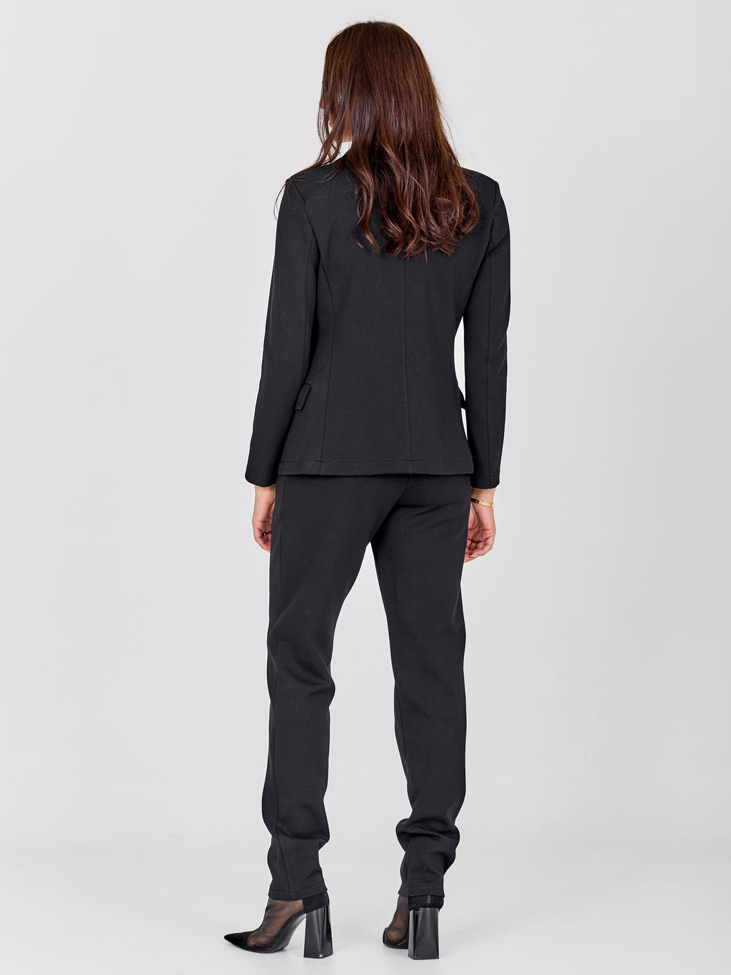 This blazer has a classic and simple expression with a slightly tailored fit that falls nicely on the body. The front is kept clean with a lapel collar and front closure, while the back is simple and gives a calm overall impression. The fit makes it easy to wear both closed and open, depending on the look you desire. Style the blazer with the matching pants for a complete set, or wear it over a top and jeans for a more relaxed everyday look.