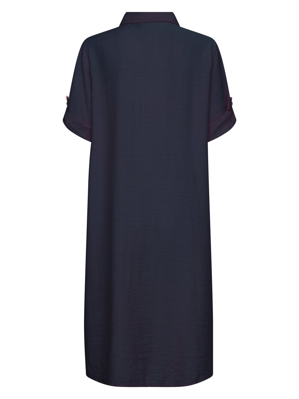 This shirt dress combines simplicity and functionality in a loose and comfortable cut. It features a full button closure at the front, a classic shirt collar, and cuffed sleeves that can be adjusted with button straps. The dress has side pockets, adding a practical element, and the lightly structured quality completes the relaxed look.