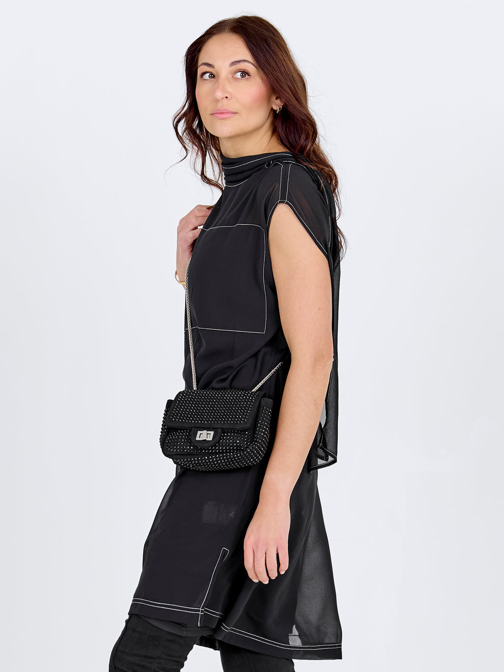 This bag has an elegant and eye-catching design, where the small decorative studs provide a beautiful structure and an exclusive expression. The bag opens with a twist lock and has a spacious interior, making it easy to carry the most important things. The fine shoulder chain adds a sophisticated touch and makes the bag perfect for both festive occasions and evening looks where you want to add a little extra.