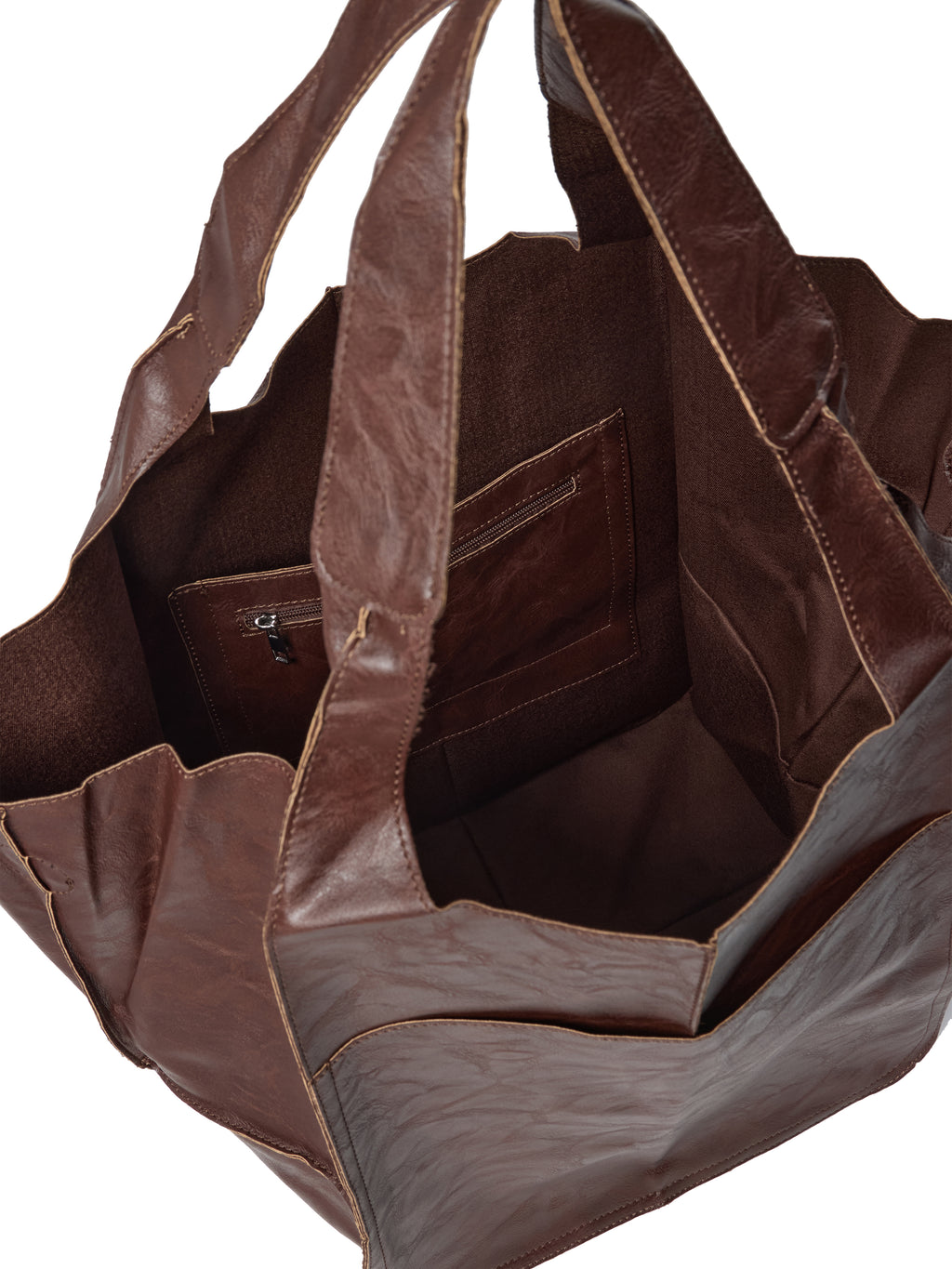 Simple and spacious - this bag is a versatile choice for both everyday and weekend use. It features a soft and flexible material that gives a relaxed expression, while the wide straps make it comfortable to carry over the shoulder. The bag's simple design with visible seams and no closure makes it easy to use and quick to pack.