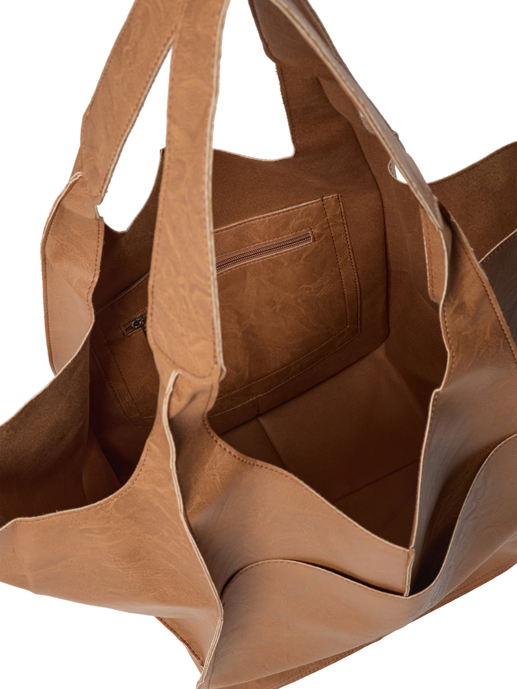 Simple and spacious - this bag is a versatile choice for both everyday and weekend use. It features a soft and flexible material that gives a relaxed expression, while the wide straps make it comfortable to carry over the shoulder. The bag's simple design with visible seams and no closure makes it easy to use and quick to pack.