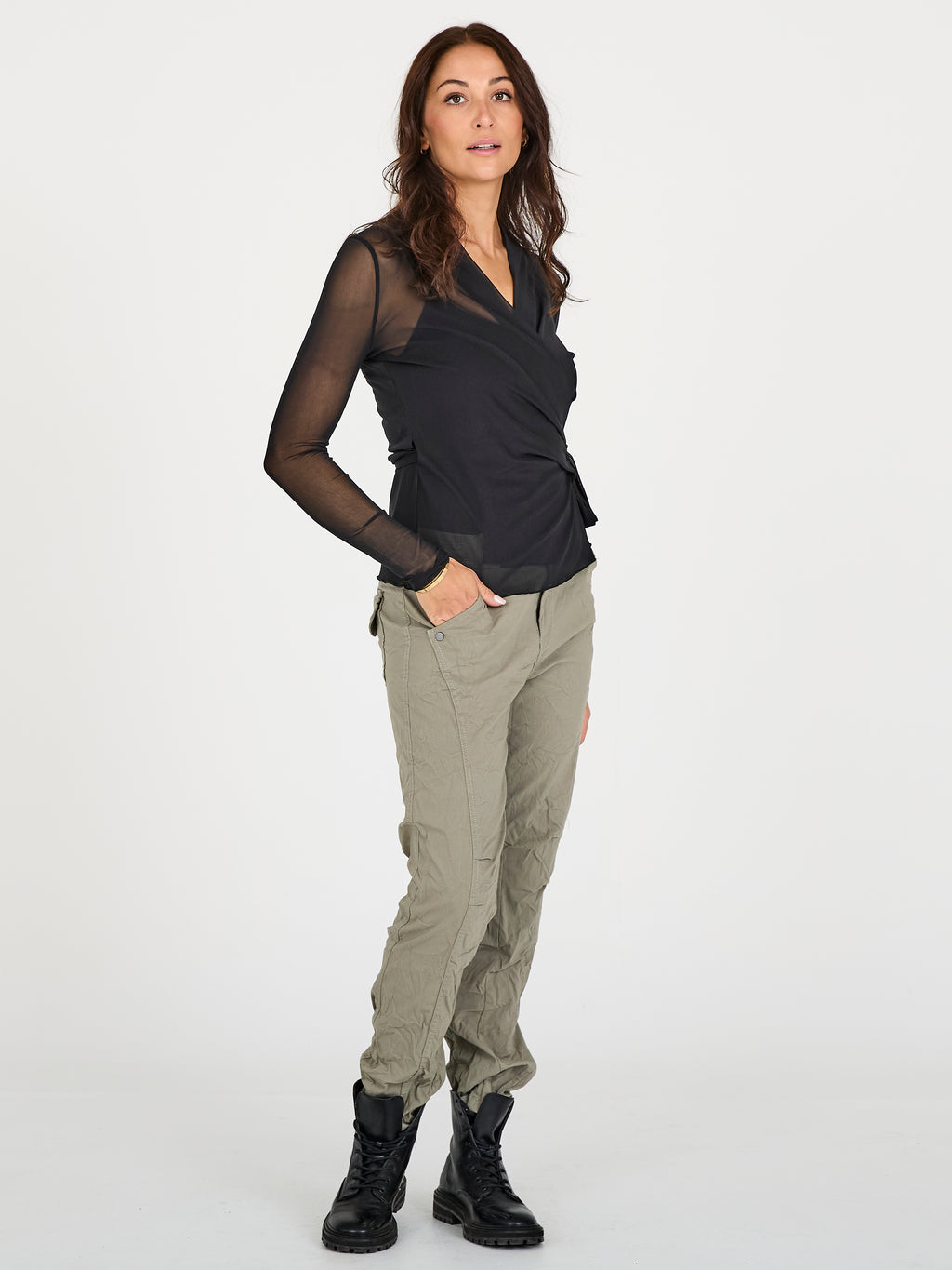 Give your outfit a modern twist with these trousers that combine practical details with a relaxed fit. They feature straight legs, pronounced seams, and flap pockets with buttons at the back, adding a cool, functional expression. The slightly washed surface gives the fabric character, while belt loops and slanted pockets make them suitable for everyday wear.
