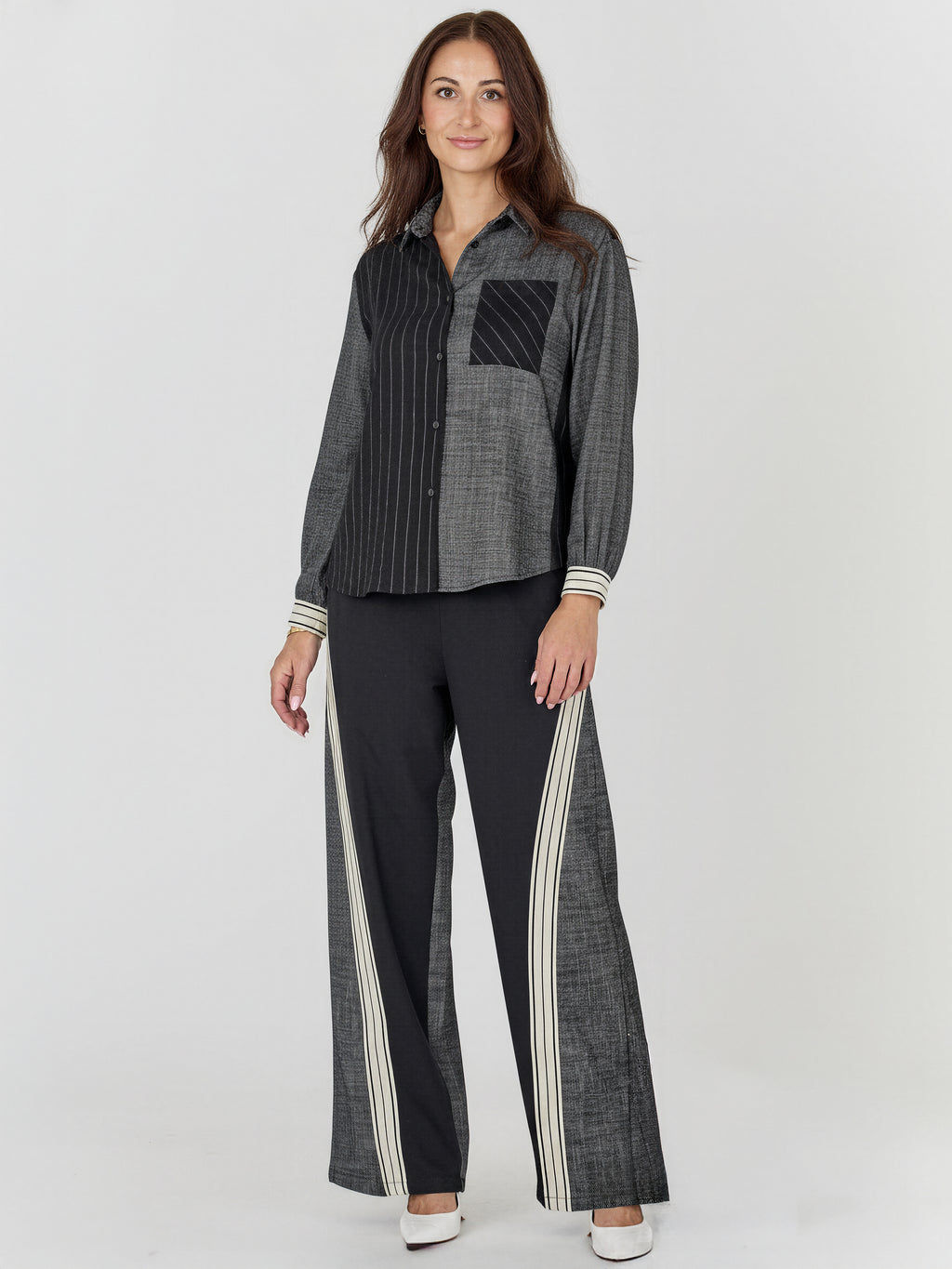 This long-sleeved shirt has a modern expression with fine, varied stripes that give a unique and cool look. The shirt has a classic button closure and a simple chest pocket, while the striped cuffs add a discreet detail. It can easily be styled with the matching trousers for a cohesive set, or paired with your own favorites.