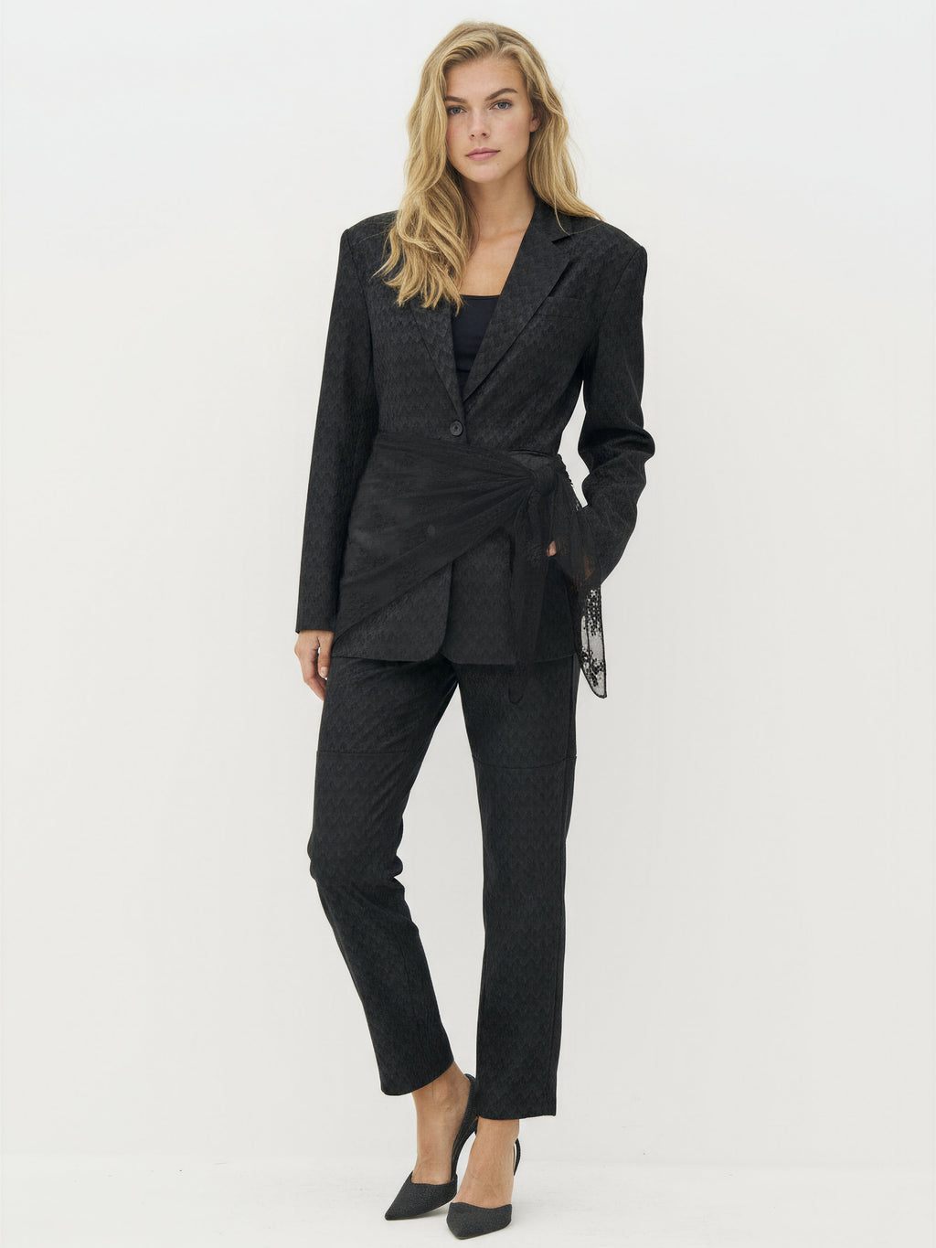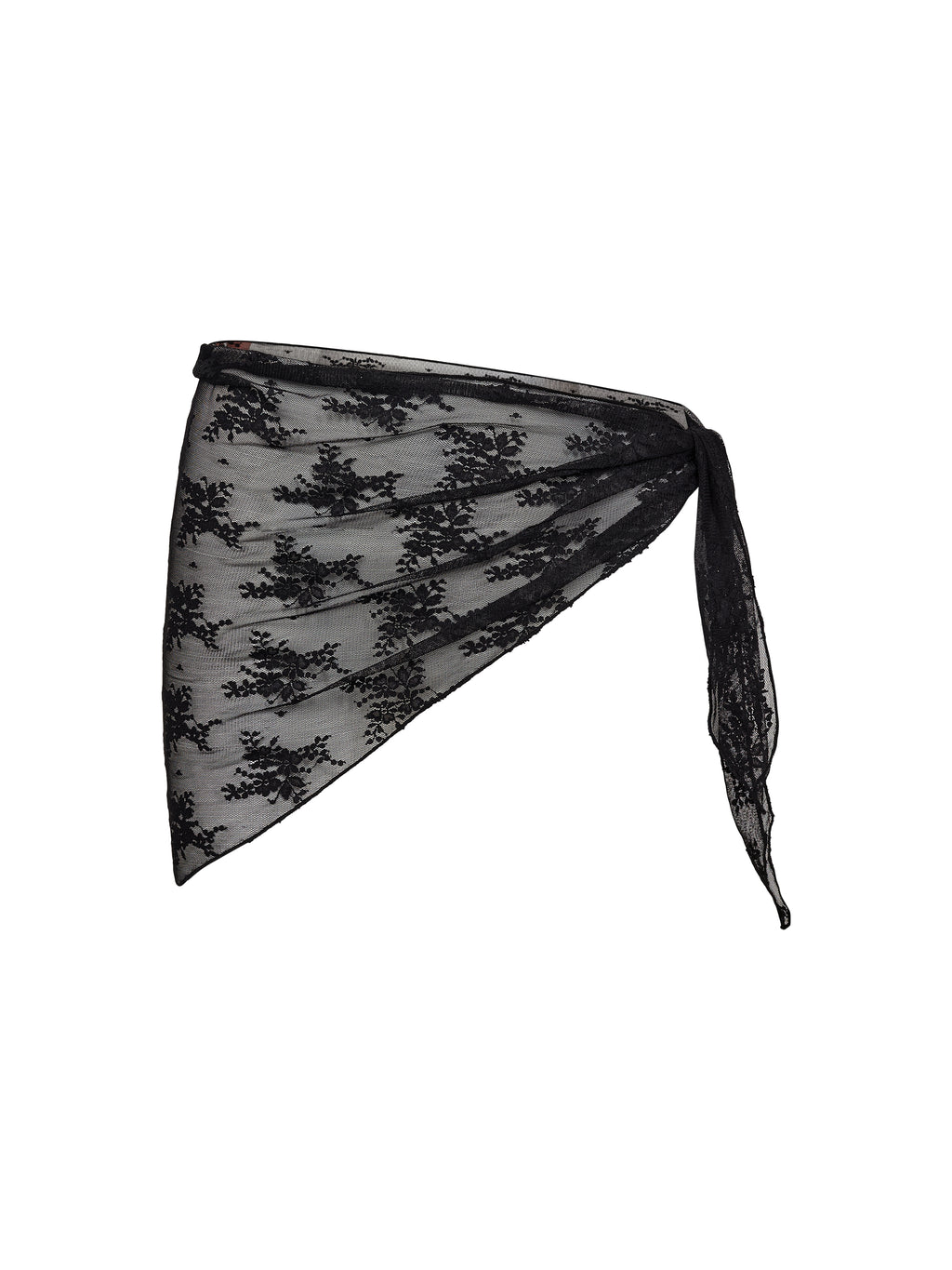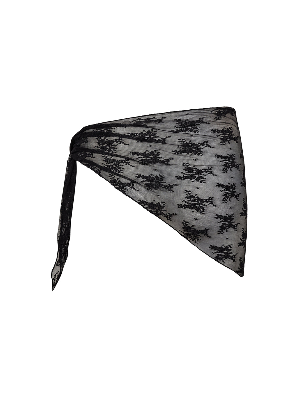 A light and decorative scarf in transparent mesh with embroidered lace pattern. The triangular shape and soft quality make it easy to style in multiple ways - tie it around the waist like a belt, use it in the hair, or over the shoulders. An elegant and decorative accessory that adds a feminine and personal touch to your outfit.