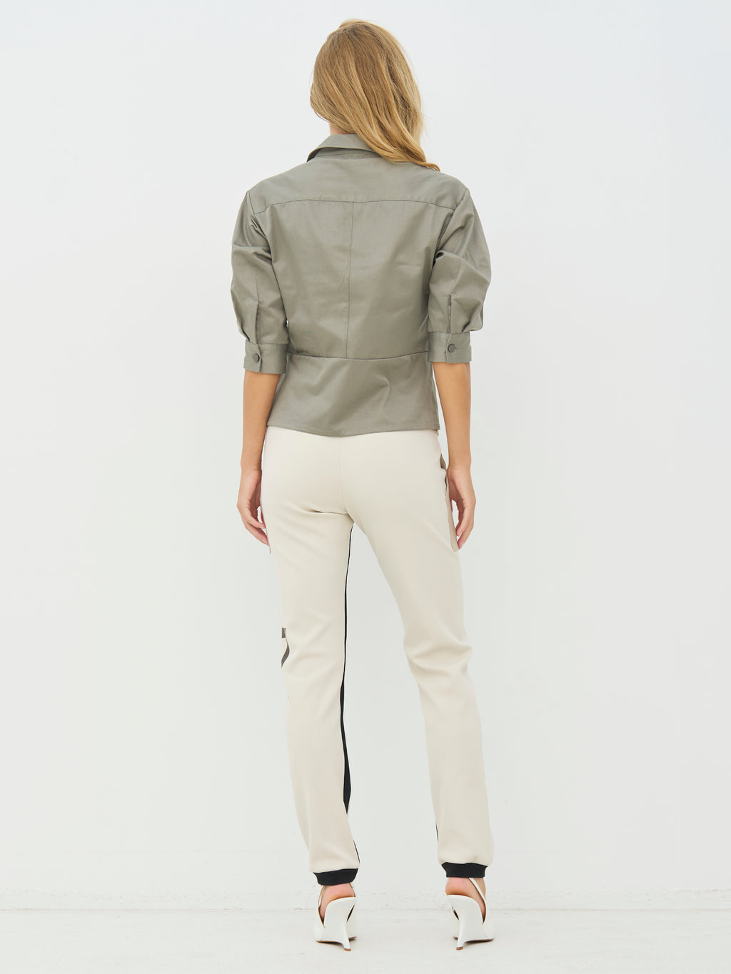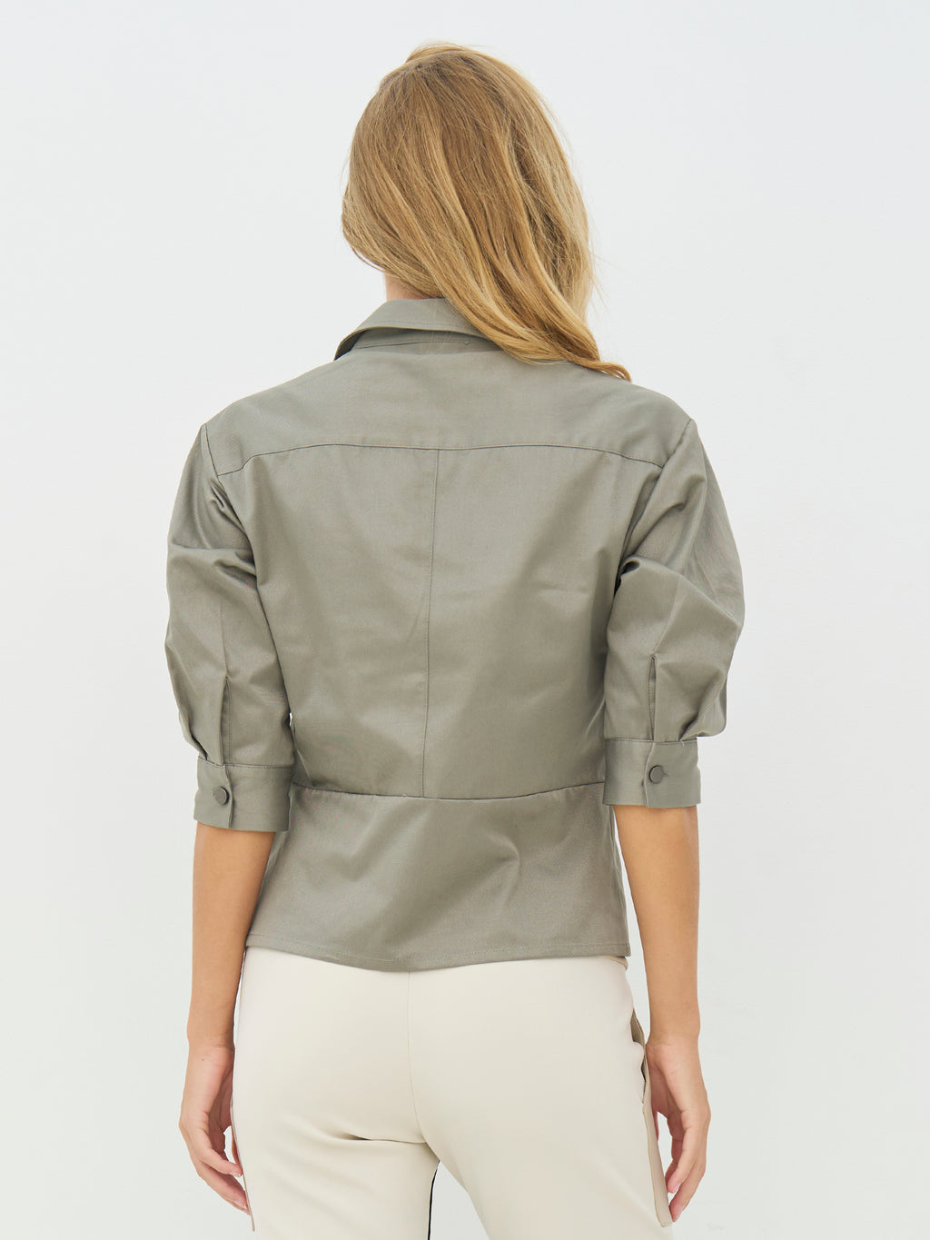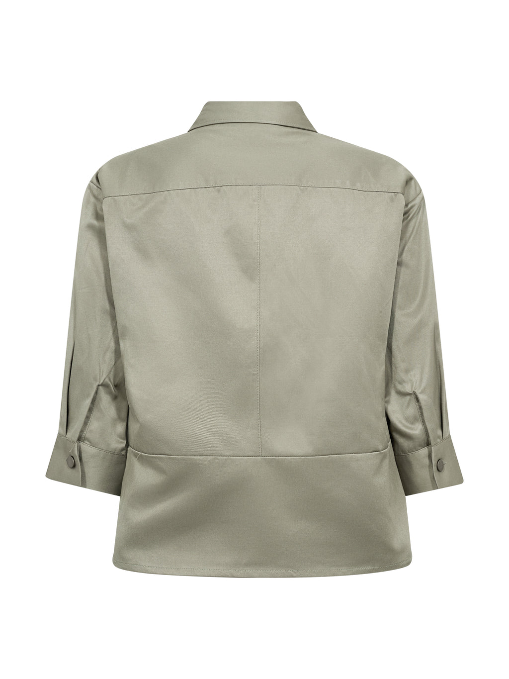 This shirt jacket has a relaxed and functional look, making it easy to wear as a light layer in everyday life. In the front, it features snap buttons and multiple pockets, giving it a practical yet edgy look. The 3/4 length sleeves contribute to a light and casual look, while the back is kept simple and falls nicely along the spine. Style the shirt jacket over a dress, or pair it with a top and pants or jeans for a casual everyday look.