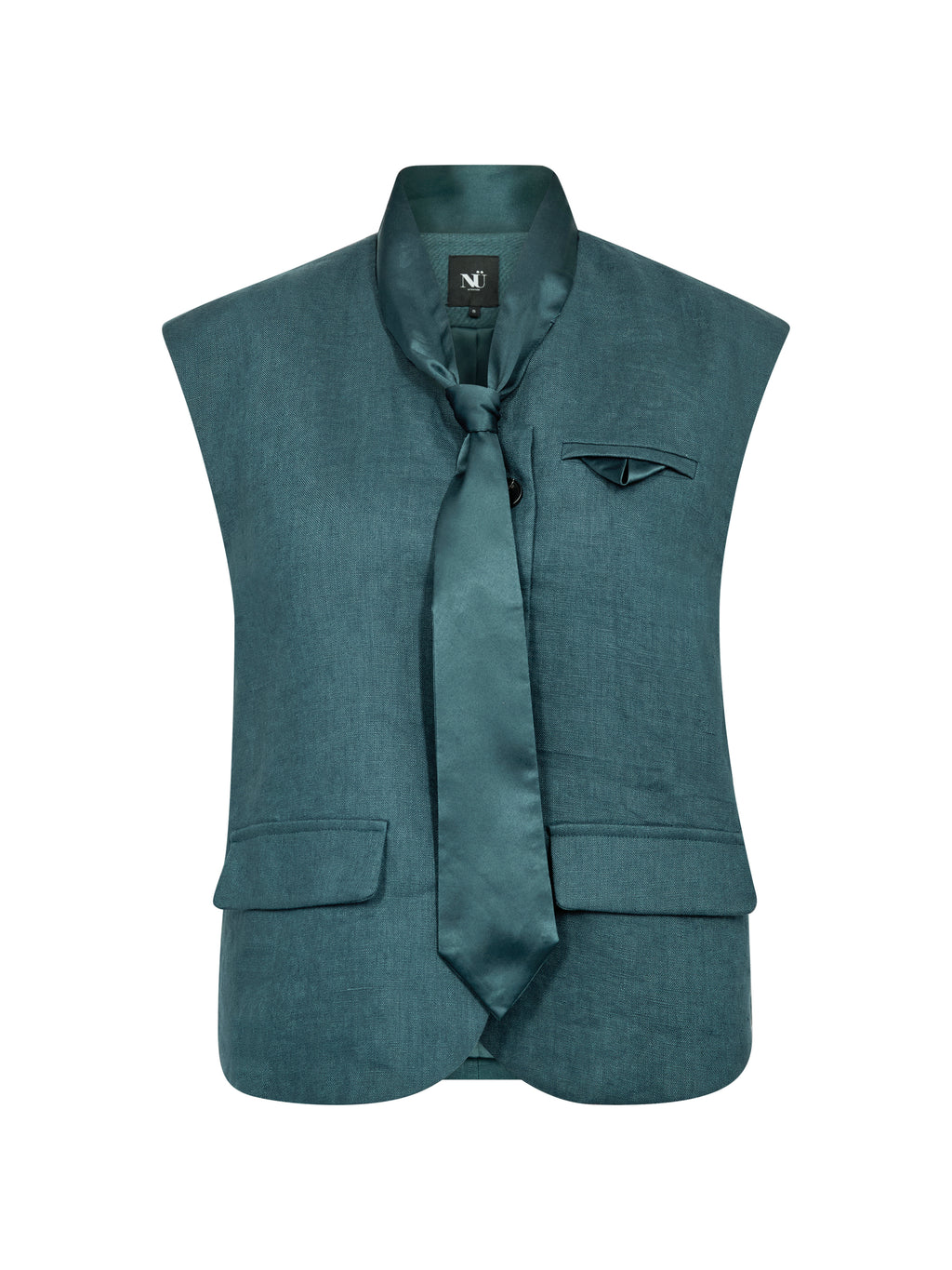 This linen waistcoat has an elegant and well-dressed appearance with a straight fit and clean lines. It can be styled with or without the matching tie, depending on whether you want a more classic or relaxed look. The vest features flap pockets at the front and a discreet chest pocket that complements the sleek design, while the back is simple and drapes nicely. Pair the vest with the matching trousers for a coordinated set, or wear it alone over a top or shirt.