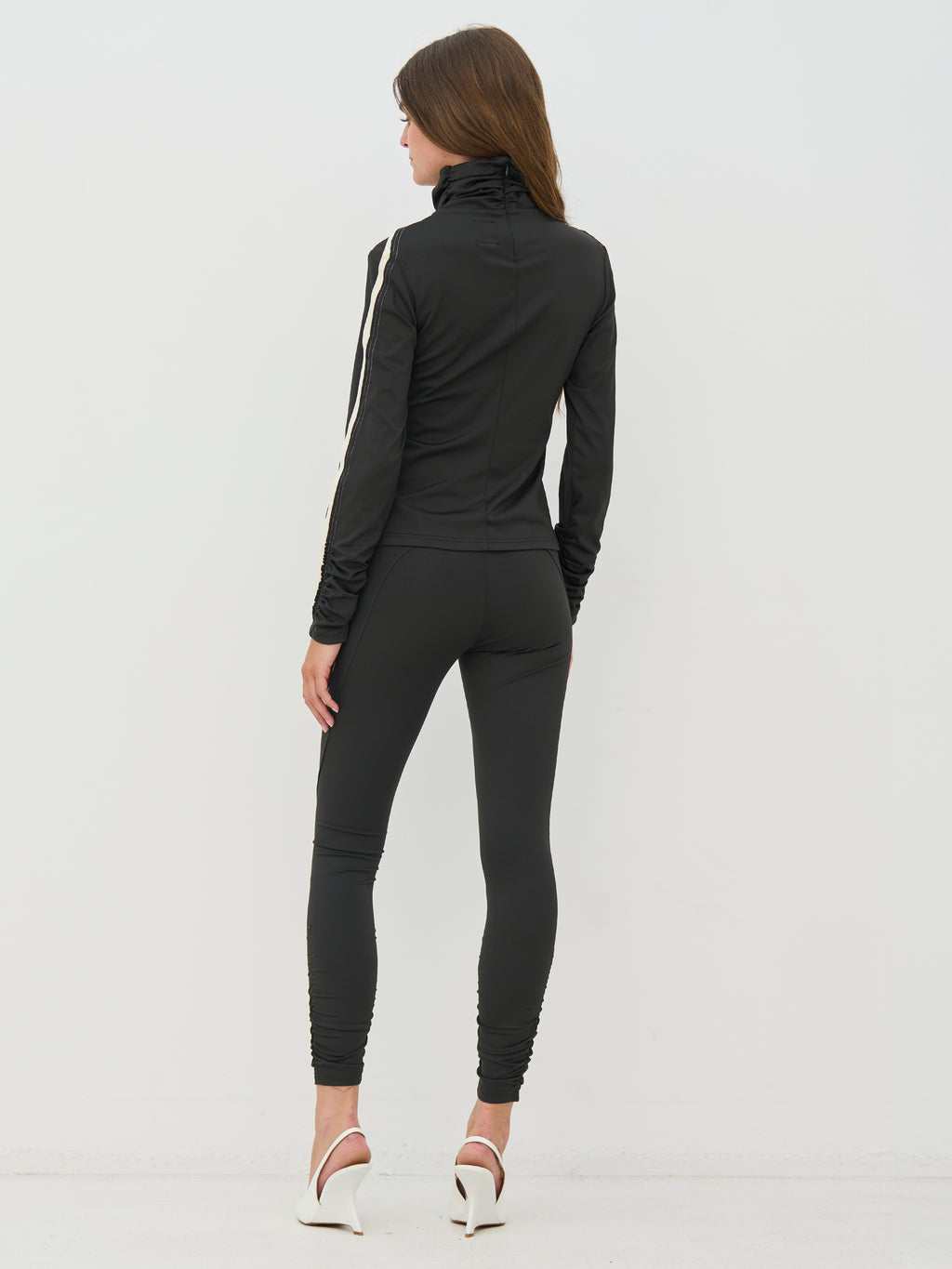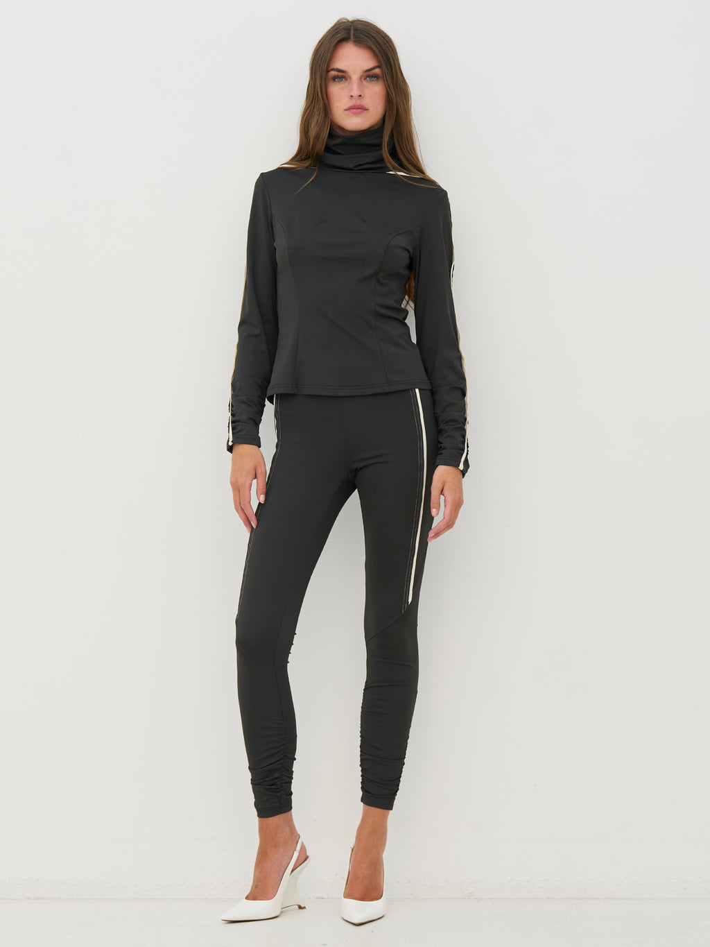 The leggings have a simple and close-fitting design with clean lines and a comfortable fit. Along the sides, there is a discreet detail that gives a modern look, while the legs are finished with a slight ruching at the ankles. The back is smooth and kept very simple. Style the leggings with a long shirt, a soft knit, or the matching top for a cohesive and well-coordinated look.