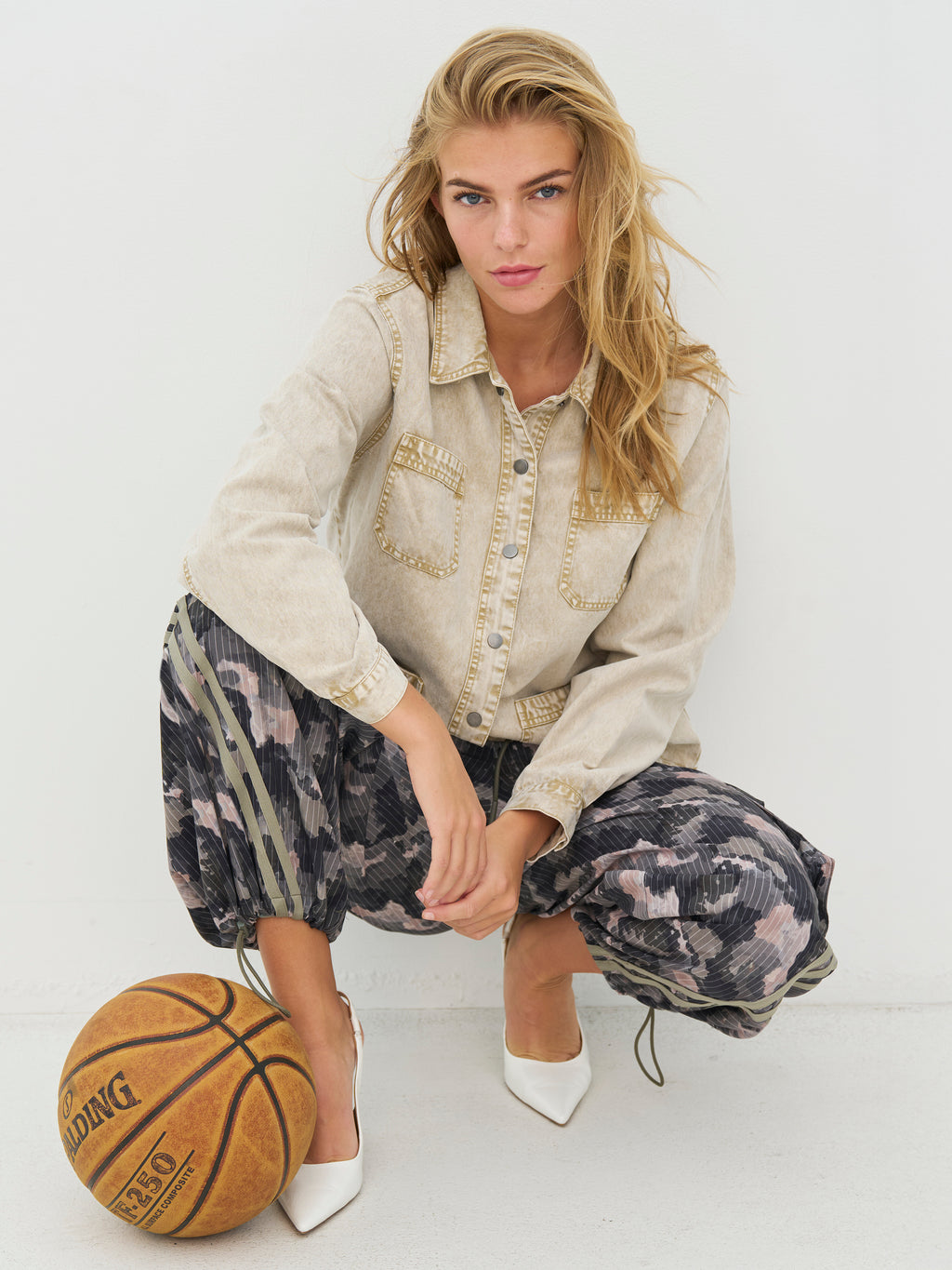 This denim shirt has a raw and relaxed expression with a straight fit that makes it easy to wear in everyday life. It is made of denim with a raw wash, which gives the fabric character. In the front, the shirt has snap buttons and four pockets, adding a functional look. The back design is simple and falls nicely along the back. Wear it closed like a shirt or open as a light extra layer over a top or sweater.