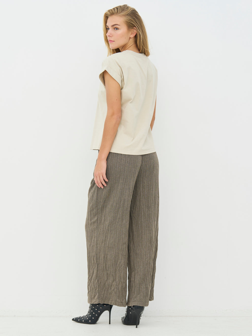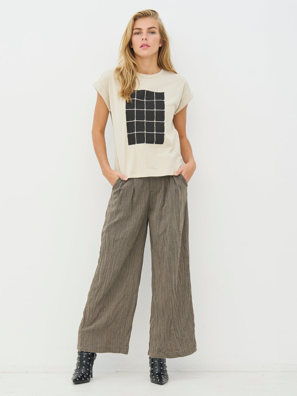 This T-shirt has a simple and modern look with short sleeves and a straight fit. The print on the front adds an edge and gives the T-shirt a distinctive look, while the back is completely simple. The quality feels comfortable against the skin and makes it suitable for both everyday wear and more relaxed looks. Style it with jeans, pants, or under a blazer for a casual yet polished look.