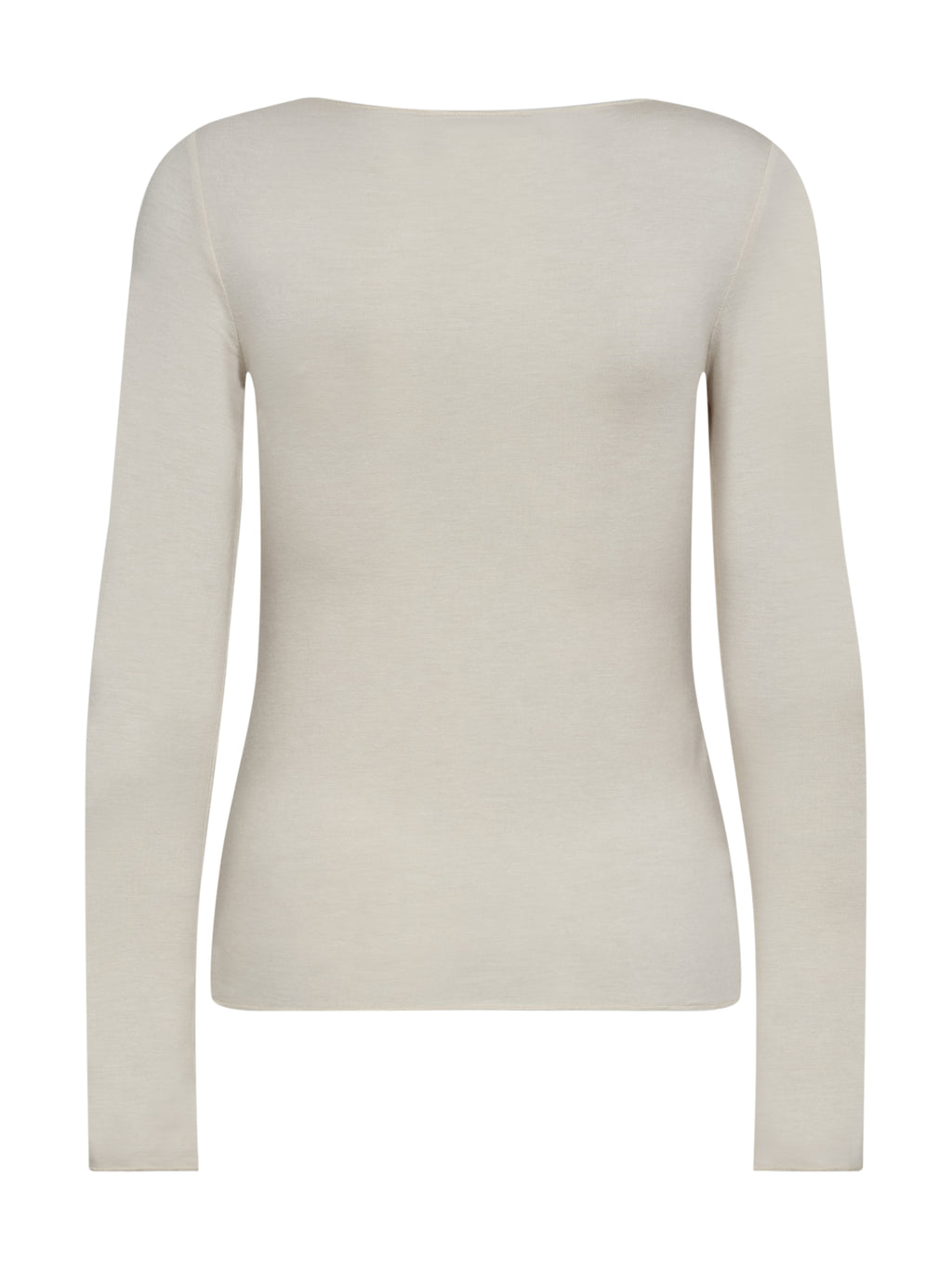 This basic blouse has a simple and timeless look with long sleeves and a round neck. The fit is lightly tailored and follows the body in a comfortable way. The front is plain and without details, while the back has the same simple cut, making the blouse easy to wear time and time again. It works both on its own and as a layer under shirts, knits, or jackets. Style it with trousers, skirts, or under an open cardigan for a calm and versatile everyday look.