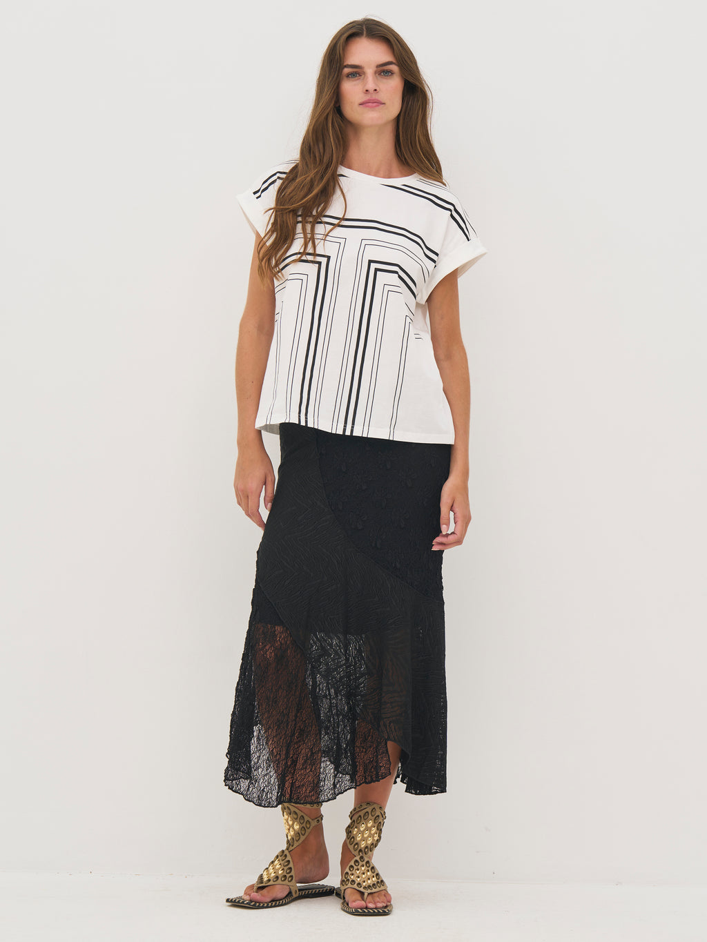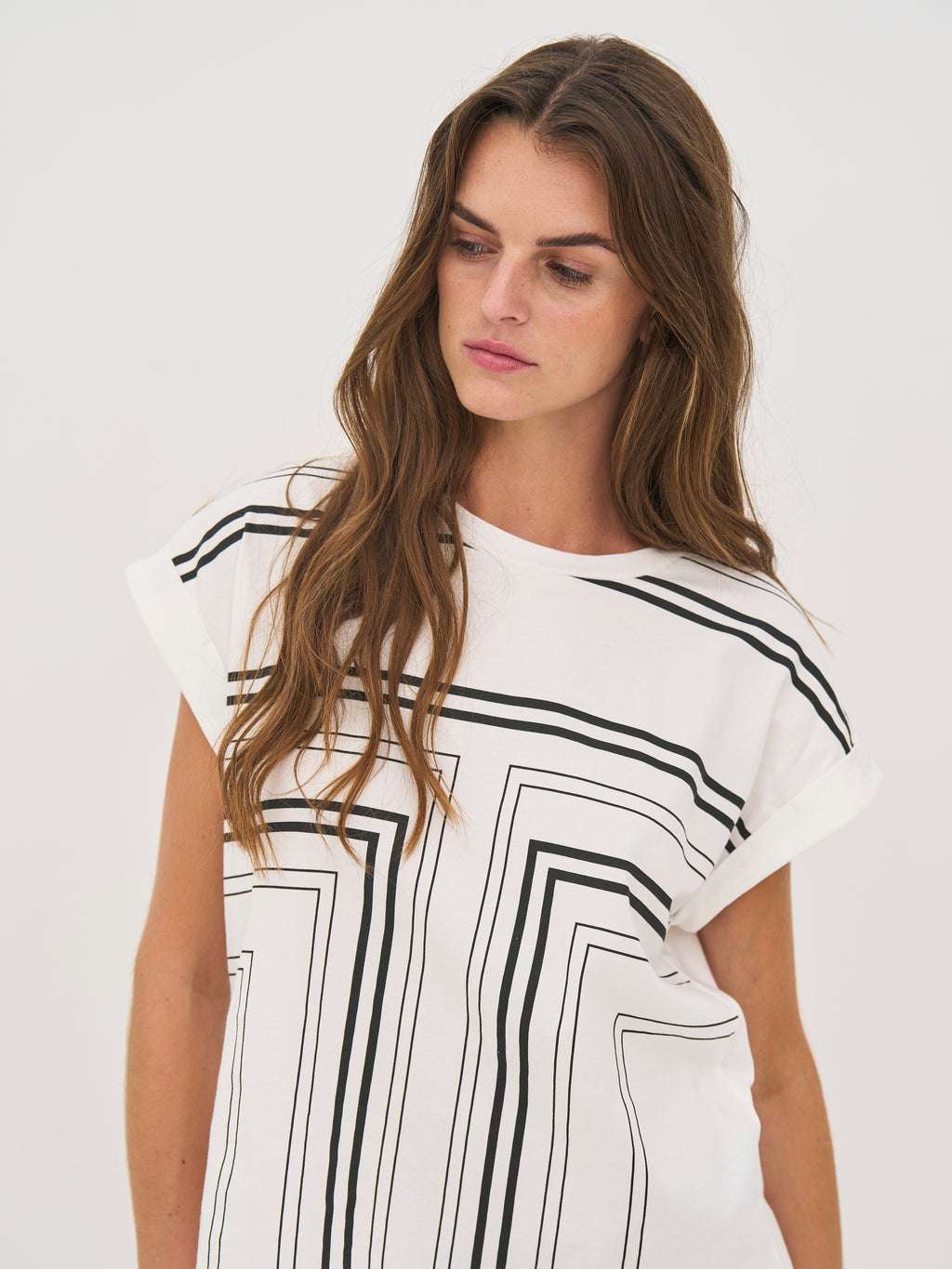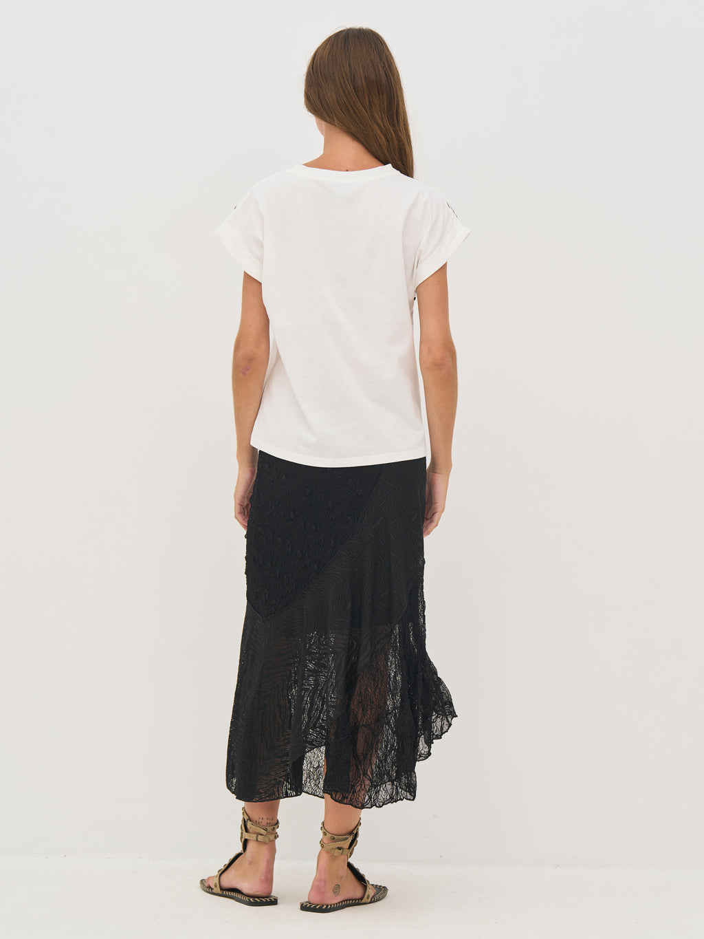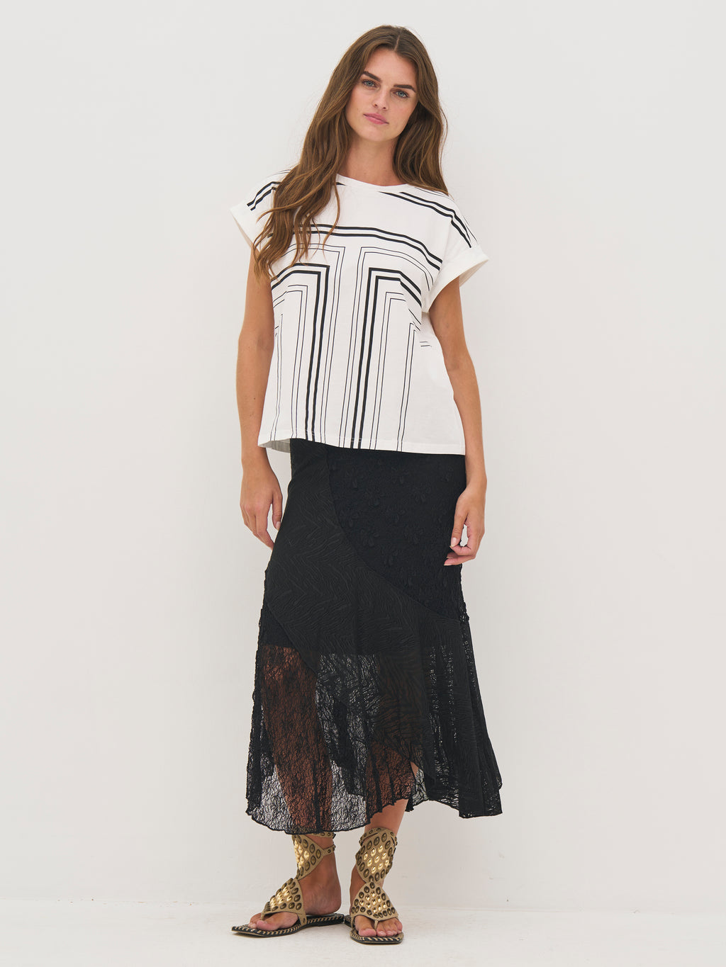 A versatile T-shirt that is easy to style for both everyday wear and more elaborate looks.